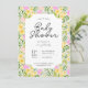 Colourful floral baby show invitation in a lime, green, peach, pink, and white palette with black font. Customize the scale of the pattern, colour and style of the font, to create your dream baby show invitation. Perfect for cottage baby showers, spring baby showers, easter baby showers, summer baby showers, and floral baby showers.