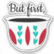 Trendy Blue, red, white Arabic coffee cup sticker. فنجان قهوة But first coffee Finjan Qahwah turkish coffee cup sticker by Arabix.