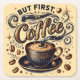 But First Coffee Art - Stylish Gold Design Square Paper Coaster