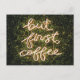But First Coffee, Neon Lights Quote Saying Postcard