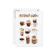 Delicious coffee dessert drinks (cappuccino, macchiato, espresso, etc) hand-painted in gouache and watercolors make up this fun vintage-style poster.