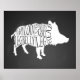 Butcher diagram meat cuts wild boar hunting poster