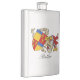 The product is a good size and came exactly as it was pictured. The lid is not attached to the flask, which could be dangerous on drunken nights... The print came out surprisingly well and looks very sharp. Would definitely recommend.