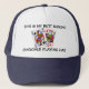 This fun design has the words "This is my butt kicking pinochle playing hat" with a queen of spades and a jack of diamonds.