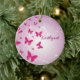 This perfect-for-young-girls-ornament has pink butterflies surrounded by stars and light swirls. Customize it with their name for a personal touch. This would make a great stocking stuffer.