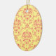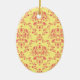 A classic, elegant damask design pattern in pastel buttery yellow and cranberry pink.