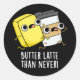 Butter Late Than Never Funny Food Pun Classic Round Sticker