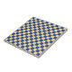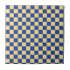A checkerboard pattern with alternating yellow and blue squares. The repeating geometric design creates a vibrant, symmetrical visual effect.