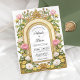 Inspired by vintage European charm, this wedding invitation features a graceful arched gold frame surrounded by lush garden florals in soft pink, butter yellow, ivory, and sage green, evoking the feeling of an elegant spring or summer garden in full bloom. The centred arch naturally draws attention to your wedding details while the floral border adds softness and colour. This design is ideal for couples planning a floral-themed, garden, or outdoor estate wedding.
