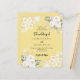 For an elegant and romantic wedding. A buttercream yellow coloured background decorated with white florals, roses and white lace. Personalize and add your names and details.