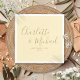 Elegant buttercup yellow signature wedding napkins featuring signature style names, these modern napkins can be personalized with your information in chic gold lettering. Designed by Thisisnotme©