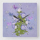 Four colourful butterflies in hues of blue, purple, and pink, hover around a bouquet of purple and white bell shaped flowers. The background is a mingled medium blue. The leaves around the flowers are a vivid green. Customize the product by adding your own caption, name, or monogram. The flowers are modified from Za Za Scrap and Tubes and the butterflies from Pats Floral and Fauna, both from Digital Scrap Designs.
