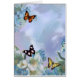 Blue hues with soft vintage blue, white and pink flowers, adorned with vibrant butterflies. Add your own message to personalize.