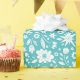 White floral pattern with butterflies on a turquoise background.