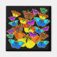 Multicolor butterflies of various shapes and colours make up this artwork. What fun!