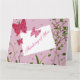 11” x 8.5” customizable thinking of you greeting card with an image of a white rectangle on a background of whimsical butterflies, green leaves, and pink sapphires. Blank inside. See the entire Kidz Korner Card & Invitation collection under the CARDS & STICKERS category in the KIDZ KORNER section.