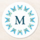 This paper coaster with an easy to personalize monogram is decorated with a pretty circle of butterflies in hues inspired by the beach. The special graphic image may be edited to change all of the colours to coordinate with your décor or make a unique statement.