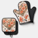 Pretty floral potholder and oven mitt set with butterflies and hearts.