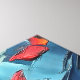 This vibrant abstract artwork captures a moment of movement and transformation, where butterflies seem to drift effortlessly across a richly textured surface. Bold strokes of deep blue and teal create a flowing, almost ocean-like background, while bursts of red, orange, yellow, and soft cream form butterfly silhouettes in mid-flight. The thick, painterly texture adds depth and energy, making the composition feel alive and constantly in motion.