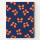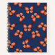This pretty notebook is embellished on both sides with a pattern of flying butterflies in hues of pink and orange with black bodies. The dark blue background colour is easy to customize.