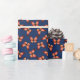 This gift wrapping paper features a pattern of flying butterflies in hues of pink and orange with black bodies. The navy blue background colour is easy to customize.