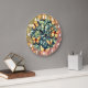 Butterflies Pattern Blue Green Yellow Shades Large Clock
