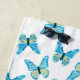 This beautiful beach towel is embellished with a pattern of butterflies in hues of blue and sand inspired by the beach. The special graphic pattern may be edited to change all of the colours for a unique look.