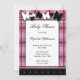Baby Shower invitations featuring a pink plaid design outlining the invitation with a black and white butterfly illustrated theme.