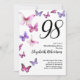Butterfly 98th Birthday Invitation in Pink Purple