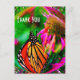 Pretty Monarch butterfly in a bubble with swirling colours nature abstract art Thank You postcard. Replace your text in the template, or be sure to delete for no text. Click on Customize to change font size, style, and colour and to add or delete text. This image is available on many products in my gallery. Please visit Smilin' Eyes Treasures to see more flower and nature photography and digital art cards and gifts.