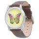 The watch looks really great! Very sharp and well done. The leather band is really nice, though for a man's watch I think it should be longer. Unfortunately, it isn't big enough for my husband's wrist but I will get a replacement because he is very excited to wear it!