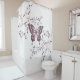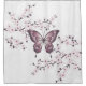 A cute mauve butterfly and cherry blossoms on a white background. Elegant shower curtain in dusty colors. Matching bath mat available.