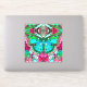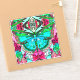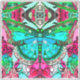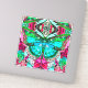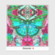 Sticker in a digital batik pattern of a Large turquoise butterfly on an ornate, arabesque medallion background, in shades of turquoise and deep rose pink