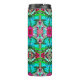 Tumbler in a digital batik pattern of large butterflies on an ornate, arabesque medallion background, in shades of turquoise and deep rose pink