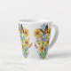 Accent the decor of your kitchen with this pretty spring or summer seasonal flower printed latte mug. This mug features a yellow flower and blue background flowers with a Monarch butterfly. Buy this cheerful mug for yourself or buy two or more as a gift for that special someone. A pretty mug like this would be a thoughtful housewarming or kitchen theme bridal shower gift.