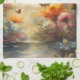 A large, blue and red butterfly sails among flowers lining a stream on a cloudy day on this stunning kitchen towel. Perfect for anyone who loves butterflies, flowers, nature, and the outdoors.