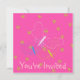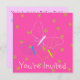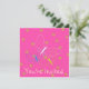 Butterflies and flowers decorate this birthday invitation for a girl's birthday or other event. The pink background is not customizable, but all the text can be changed.