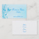 Blue business card with butterfly and flower swirls