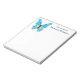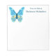 Personalized name text is featured on this notepad along with a lovely butterfly graphic in shades of blue and sand. All colours of the text and the image may be edited to create a unique look.