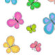 Multicolor folk art style butterflies flutter over a charming pink and white striped background. Personalize with a name or message!