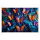 Immerse yourself in a stunning fluid art acrylic pouring piece that captures a top-down view of a glossy canvas alive with swirling colors and organic cell formations. Dynamic ribbons of poured paint intertwine to suggest the delicate shapes of numerous butterflies in various sizes, each bursting with vibrant hues like sapphire blues, emerald greens, fiery oranges, amethyst purples, radiant yellows, and deep crimsons. The surface gleams with a thick, resin-like gloss, enhanced by shimmering iridescent glitter that reflects light and adds a magical, cosmic quality. The composition exudes energetic movement and ethereal beauty, blending abstract chaos with a sense of transformation and fantasy. Soft lighting highlights the glossy finish, intricate paint details, and sparkling accents, making it an evocative, captivating artwork perfect for futuristic backgrounds, concept art, or exploring themes of vibrant chaos and metamorphosis.