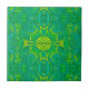 Ceramic tile featuring whimsical arabesque pattern full of summer vibes. Stylized flowers, butterflies, tree branches and solar spheres. Vintage / ethnic / bohemian / boho / hippie / 70s / newage style. Yellow and green colours, hand drawn pastel texture.