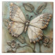 A breathtaking ceramic faux relief tile featuring an intricately detailed butterfly surrounded by delicate floral elements. This nature-inspired design adds an artistic touch to any space, blending elegance with a timeless organic feel.