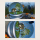 Inside a "snow globe" is a summer landscape with a cottage overshadowed by maple and cherry trees. The surrounding grassy field is filled with lilies and wildflowers in bright colours. Roses and ivy climb the wall of the little house. It's a late summer day, and a thousand bright orange and blue butterflies swirl around the globe.