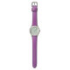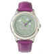 Delightful happy time watch for girls featuring purple and green zigzag pattern background for whimsical smiling butterfly and purple flowers with light blue clouds drifting by. We specialize in custom-made designs, contact us if you would like a unique made-to-order layout using this zigzag and butterfly image.