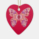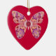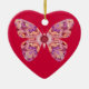 This heart shaped Christmas or Mother's Day ornament features a beautiful and unusual butterfly design. The colours are first marbled, then formed into a kaleidoscope and then into a butterfly. It is marbled in rose, lavender, gold, and white, and is a striking effect against a red background.