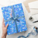Lacy butterflies flock in a cool blue palette on this lovely gift wrap.