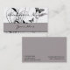 This elegant business card design has a bright white background with a grey floral design. Above that is a layer of this flower design in black with a butterfly in the upper right as well as scattered around. Across the lower section is a band in grey with your name. Perfect for any business but especially great for alternative heathcare, decorating, chiropractic services, massage therapy, nail salon, spa, jewellery, cosmetologist, fashion, beauty consultant, personal trainer, or any time you would like an elegant natural feel. Add your information and it is ready to go!