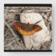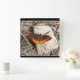 an inspirational message sits atop a beautiful monarch butterfly resting on a rock on this beautifully designed clock.