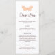 A delicate orange butterfly accents this wedding menu. It is part of the Butterfly Kisses wedding collection. It also easily coordinates with the Purple Butterfly Kisses wedding collection.
